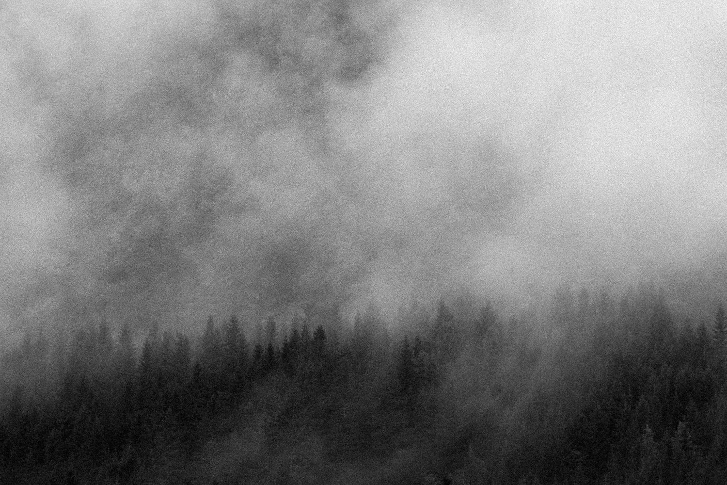 2016. Medium format 6x7 film photograph shot on a Zenza Bronica; scanned, cropped and digitally printed. This photo has been my personal favorite for years — absolutely indigestible for most regular folks, this one is for the true fans of contemporary art & hardcore film grain. It's a close-up crop of the original, heavily dominated by film grain and texture. This is where landscape film photography meets minimalism and gets crushed by grit. The image was taken during one of my road trips across Western Norway, where I lived between 2015-2017. The photo is part of my series Vestlandet, shot on 6x7 and 35mm film cameras, capturing Norway raw, foggy and gloomy — just as it is most of the time. This is the true Norway and its true charm, not the sunny bullshit you see on postcards.